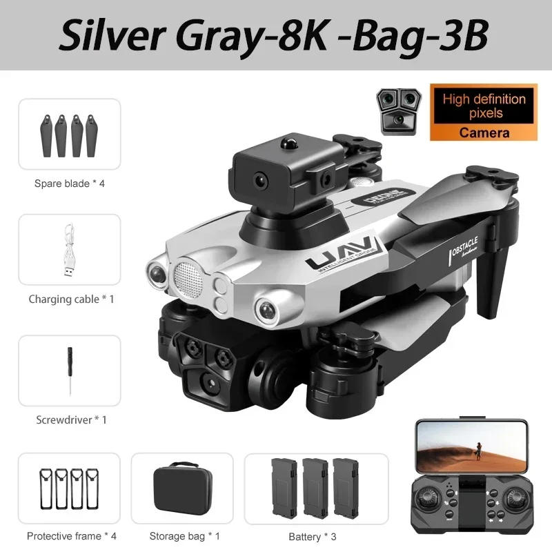 Iconic Brand LU200Pro Drone 8K GPS Professional HD Aerial Photography Triple-Camera Obstacle Avoidance Quadrotor Brushless Drone10000m 1 Remote control frequency/channel: 5GHz/6 channels 2 Product material: plastic/metal/electronic components three Adjust the camera: 150° electric adjustment [can understand the other way up shooting] four Product color: black five Engine Model: 816 Brushless Motor 6 Remote control mode: left throttle 7 Flight time: about 48mins eight Phone Clip Size: 5 inch nine Remote management battery: AAA battery*3 10 Body battery: 3 1800mAh 11 Remote control distance (no interference): 10000m 12 Charging method: USB 13 Charging time: about 60 minutes 14 Packing method: garage bag + colour box 15 Body size: 25*25*5cm sixteen Folding size: 13*8*7 17 Packing size: 23*8*24cm 18 Image transmission signal: the drone has its personal WiFi sign 19 Image go back distance (no interference): 10000m 20 Drone weight (battery included): 138g 21 Package weight (color field + garage bag): 560g Remote control function: One-key take-off/one-key landing/ascent/descent/left/right direction/360° roll/headless mode/speed and gradual speed/one-key reset/fine direction-adjustment/lens adjustment angle Aerial pictures utility function: One-key take-off/one-key landing/ascent/descent/left/right direction/360° roll/headless mode/speed/slow speed/photo/video/dual digicam switch/automatic photograph face recognition/gravity sensor/ runway flight/ Camera settings: Video Resolution: Standalone 8K 7680*4320 Photo resolution: 8K single shot 7680*4320 Video resolution: 8K twin front digicam 7680*4320, backside camera 7680*4320 Photo resolution: 8K twin entrance digicam 7680*4320, bottom digicam 7680*4320 Package Included: 1 x LU200 Drone 1 x Remote Control 1 x Battery 1 x USB Charging Cable 2 x Spare Blade 1 x Screwdriver 1 x Manual