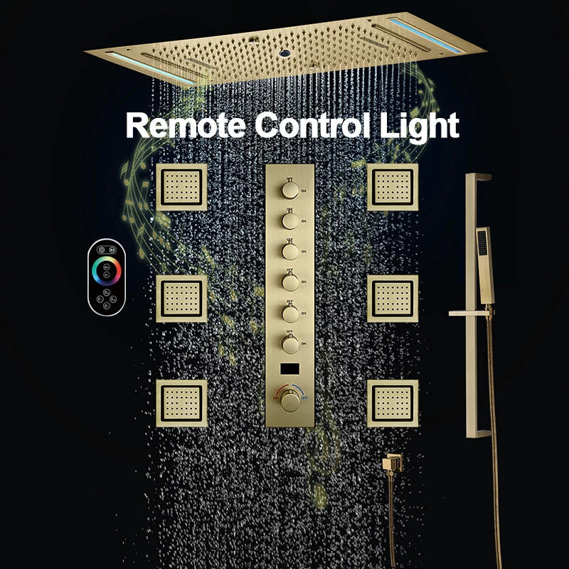 Luxury 638*338mm Big Rain Shower Head Bathroom Faucets Hotel Hot and Cold Golden Shower System Set Music Waterfall Showerheads