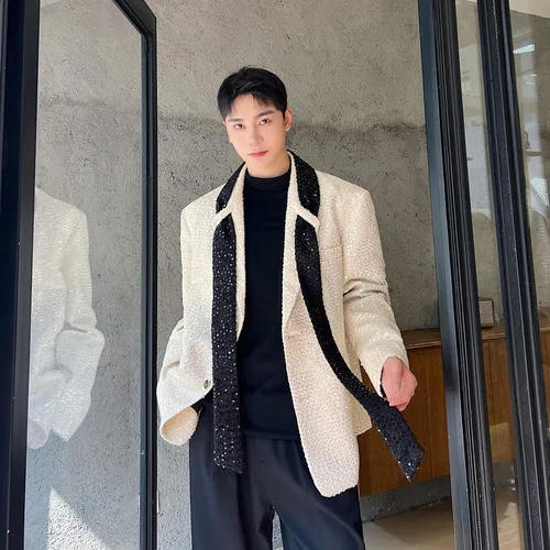 LUZHEN 2024 Spring New Trendy Sequins Decorate Ribbon Splicing Design Elegant Blazer Coat Men Luxury Suit Jacket Fashion LZ3054