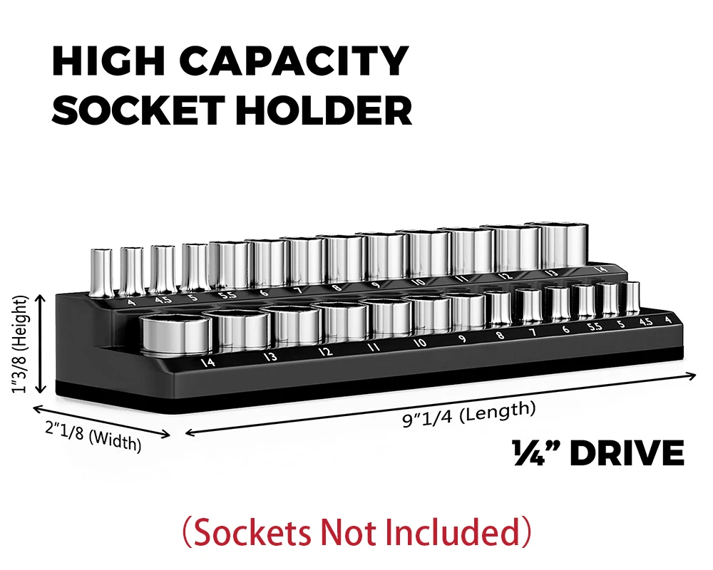 About this merchandise ★ MAKE YOUR JOB LESS FRUSTRATING IN MINUTES - This TOYOSN Tools Magnetic Socket Organizer Set (for SAE sockets) can store as much as sixty eight of your 1/4", 3/8", and 1/2" drives SAE sockets That&;s appropriate all of your tools in one place, what you always needed Start having fun with the neatness and organization you deserve ★ STORE YOUR SOCKETS ANYWHERE - Capable of storing your sockets in your drawer, or fastened to the side of your toolbox The stable ferrite magnet base keeps your sockets within the tray and the tray secured to any steel floor (YES, even upside down) ★ SCRATCH-FREE MOUNTING - Everything in your storage or shop is an INVESTMENT for yourself, and should be treated as such That&;s why we constructed these magnetic organizers for sockets with a RUBBERIZED magnetic base that may NEVER scratch any metallic surface you mount it on So cross ahead and mount it on your toolbox or metal wall; we have your again ★ WORKS WITH REGULAR SOCKETS - If you&;ve been searching for a magnetic socket organizer tray that may maintain both DEEP and SHALLOW sockets, then your search is over, now you have three These holders for sockets have compatibility along with your deep and shallow 1/4", 3/8", and 1/2" force SAE sockets (compatible sizes marked in images, affect sockets do not fit) ★ OLSA TOOLS TRUST - Our deep commitment to high quality is the explanation why software lovers like your self keep coming again to us for extra All TOYOSN Tools merchandise are sponsored by a limited lifetime warranty that protects your funding opposed to any manufacturer&;s defects All you need to do is get in touch with us and we&;ll make it right by you Guaranteed