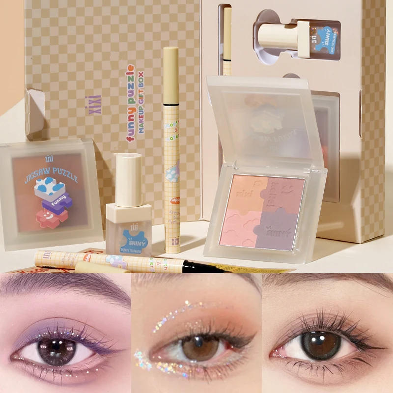 Makeup Kit Liquid Eyeliner Brighten Glitter Shadow Silkworm Pen Four-color Matte Eye Shadow Palette 3Pcs Makeup Sets Box