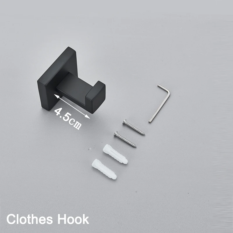 Matt Black Bathroom Hardware Set Kit Accessories Wall Shelf Towel Bar Rack Rail Robe Hanger Toilet Brush Roll Paper Holder Dish