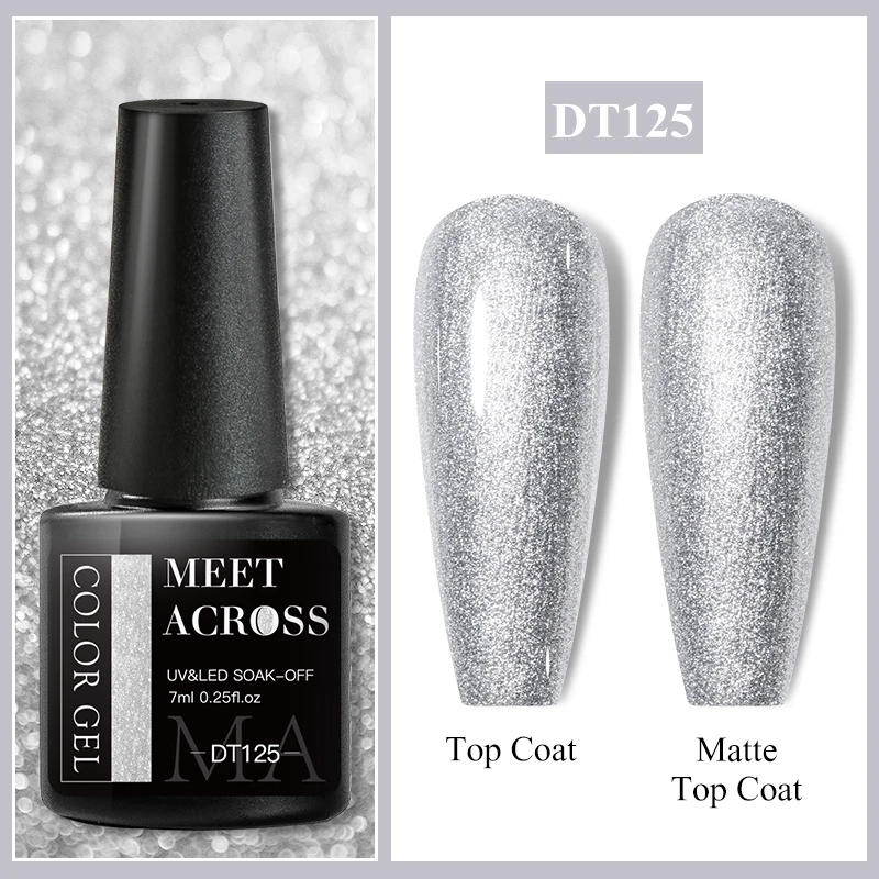 MEET ACROSS 7ml Red Gel Nail Polish Crystal Semi Permanent Soak Off UV Gel Varnish Nail Art Manicure Base Matte Top Coat Vernis