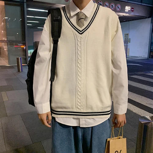 Men 2022 Spring Autumn New Solid Color Sweater Vest Men's V-neck Knitted Sleeveless Tops Male Loose Pullover Waistcoat A461