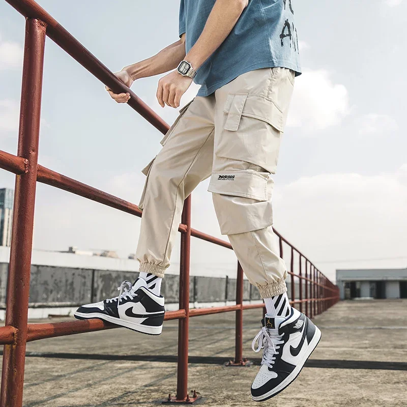 Men Cargo Pants Streetwear Black Fashion Sweatpants Casual Trousers Male Jogging Elastic Waist Harem Pants Large Size