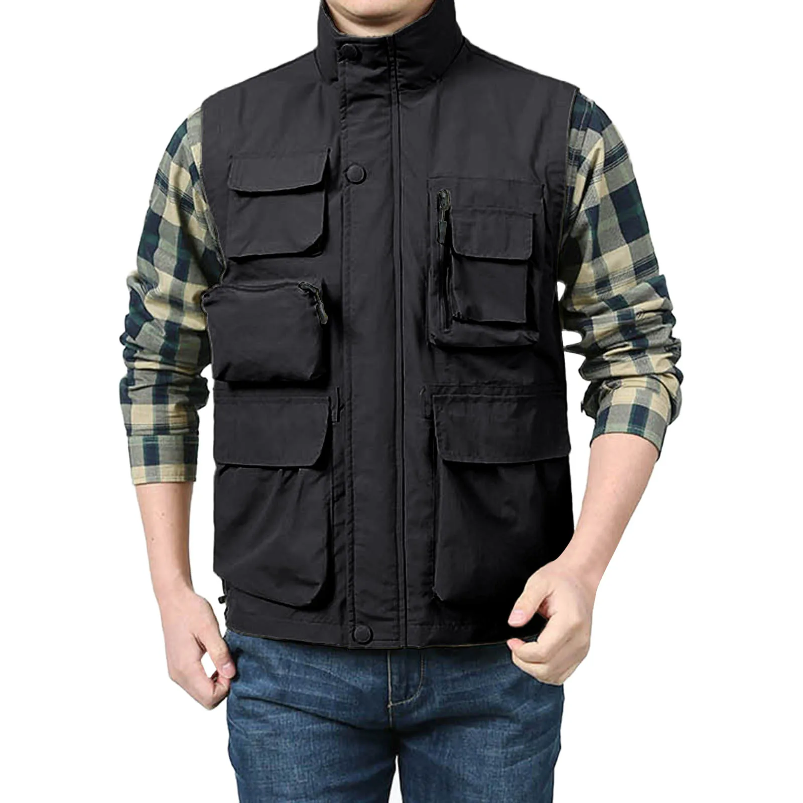 Men's Fashion Vest Summer Photographer Waistcoat Tactical Webbed Gear Coat Functional Multi Pocket Work Sleeveless Jacket Man