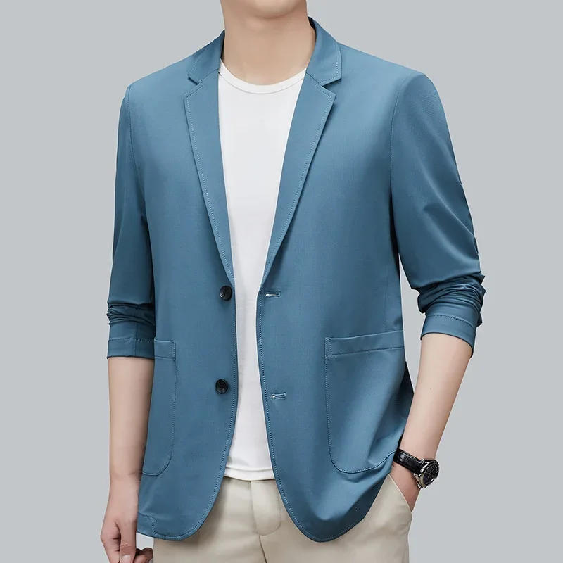 Men's Spring Summer Western-style Suit Fashionable Simple Business Casual Elastic Edge Single Breasted Jacket New Model Adults