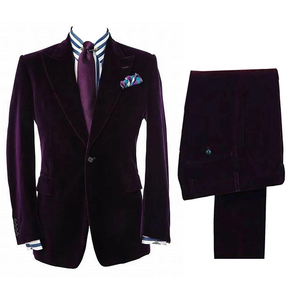 Men's Velvet Suit Two Pieces One Button Peak Lapel Tuxedos for Groomsmen Party