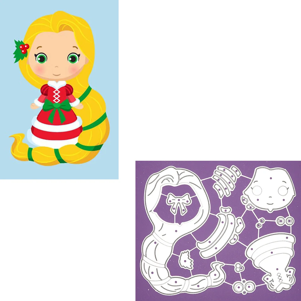Merry Christmas Girl Metal Cutting Dies Set, Happy New Year Stencil, DIY Scrapbooking Gift Card Craft