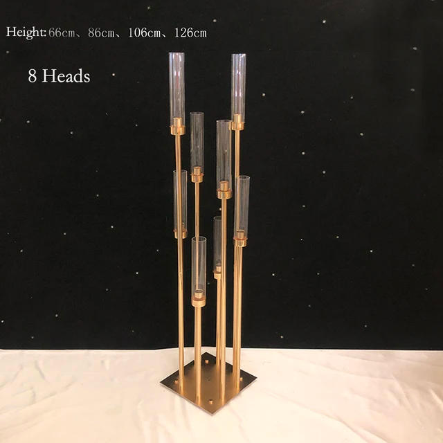 Name: Metal Gold candle holders Table Centerpieces Items describtion : Style: eight Heads / 10 Heads Material: Metal and Acylic Package include: 1 pcs Candle Holder Suits for wedding,home or vacation ornament If you would like more items,do please touch me,i will give the finest reductions to you