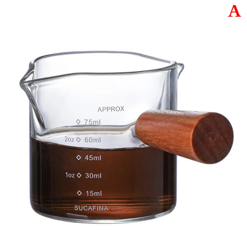 Milk Cup Espresso Shot Glass With Scale Espresso Measuring Cups With Wooden Handle Double Spouts Measuring Triple Pitcher