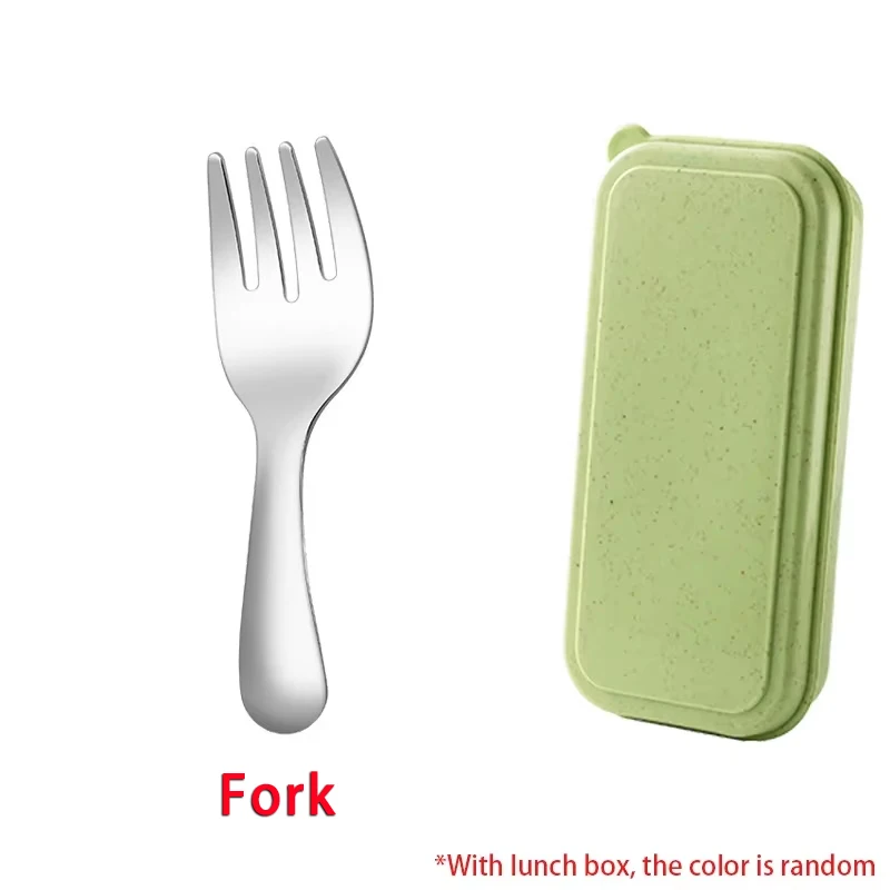 *With lunch box, the color is random *With lunch box, the color is random *With lunch box, the color is random *With lunch box, the colour is random Description Name: short handle spoon and fork set Material: 304 stainless-steel Process: one-piece molding without welding Color: 5 colors elective Set: spoon, fork Size: Fork: 10*3CM Spoon: 10*3 Lunch box: 11*5*2