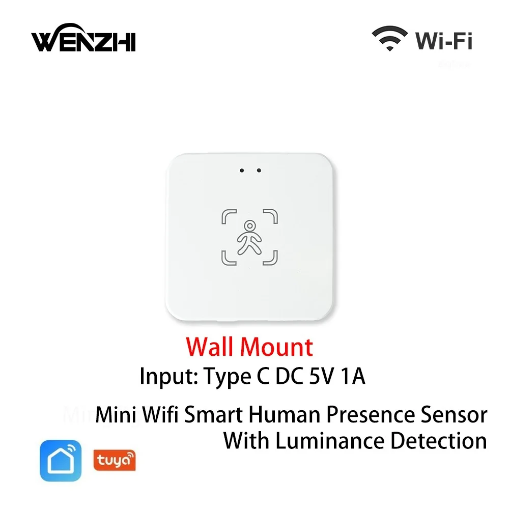 Mini ZigBee 3/Wifi Mmwave Human Presence Sensor Radar Motion Movement With Illuminance Detector 5/110/220v Tuya Smart Life 1 ZigBee Smart Human Presence SensorFeatured as human presence,human static,human micro movement and human motion motion detection to locate the presence or absence of people within the area,even to locate the static state such as workforce napping accurately with mmWave Radar Detection featured. Perceived Light Intensity for SmartScene LinkageIlluminance display screen in Tuya Smart APP enables its clever function as wise scene linkage with different clever devices,especially your home lighting fixtures to ON/OFF mechanically as the brightness changes;Besides,you can intelligently linkage the sensor to diversified clever domestic instruments for home automation. ZigBee Hub as Control CenterTuya ZigBee gateway is needed for this ZigBee human presence sensor,performing since the center bridge for all Tuya ZigBee wise devices with extremely stable signal and a great necessity for whole-house intelligence.(note:Tuya ZigBee hub is incredibly recommended for its wider compatibility than different hubs)4 ZigBee edition helps ZigBee2mqtt. Note:This Mini edition can not learn and display real-time detection distance. But you would set the detection distance. Specifications:Network: ZigBee3 / Wifi. Wall/Bracket Mount Input: USB-Type-C 5V/1A Celling Mount Input: AC80-250V Working temperature: -10℃~+55℃ Detection Angle:90° Micro Motion Detection Distance: 6m Motion Detection Distance: 10m Illumination Value: 0~3000lux Product Size: Wall Mount: 60*60*12mm/2*2×0 Bracket Mount: 72*32*37/2*1*1 Celling Mount: φ61*H35mm/φ2*H1 Celling Mount Opening: 53-58mm/2 list:Human presence sensor*1 User manual*1 2m USB Type-C Cable*1 double-sided tape*1(For Wall/Bracket Mount)Various Detection Functions1. Fretting Detection: It can encounter small actions resembling tilting the head, waving, raising the hand, flicking the body, fiddling with the cellular phone, turning over the book, etc. 2. Presence Detection:It can encounter the human body in the desk bound state. 3 Detection: It can stumble on walking, trotting, instant running, circling, jumping and different movements. 4 Detection: Sensors can discover the respiratory of people inside a definite fluctuate to establish the presence of folks in the detection area. For example, while sound asleep or reading Mount①Indicator Light ②illminance Sensor ③Radar Sensing Surface ④SET Button ⑤Type-C PortBracket Mount①Indicator Lightillminance Sensor ②Radar Sensing Surface ③Type-C Port ④Mounting Bracket ⑤SET ButtonCelling Mount
