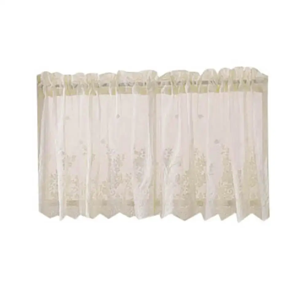 Modern Lace Jacquard Window Curtain Valance Lace Hem Coffee Short Curtain for Cabinet Door Bedroom Home Decor