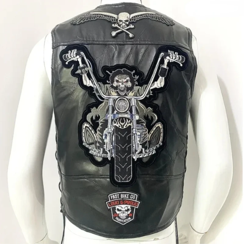 Moto Leather Vest Patch Men's Motorcycle Sleeveless Jacket Collarless Moto&Biker Waistcoat Locomotive Club Punk Veste