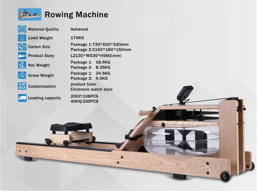 Multi Stage Adjustable Solid Wood Household Oversized Water Tank Resistance Adjustable Foldable Water Resistance Rowing Machine