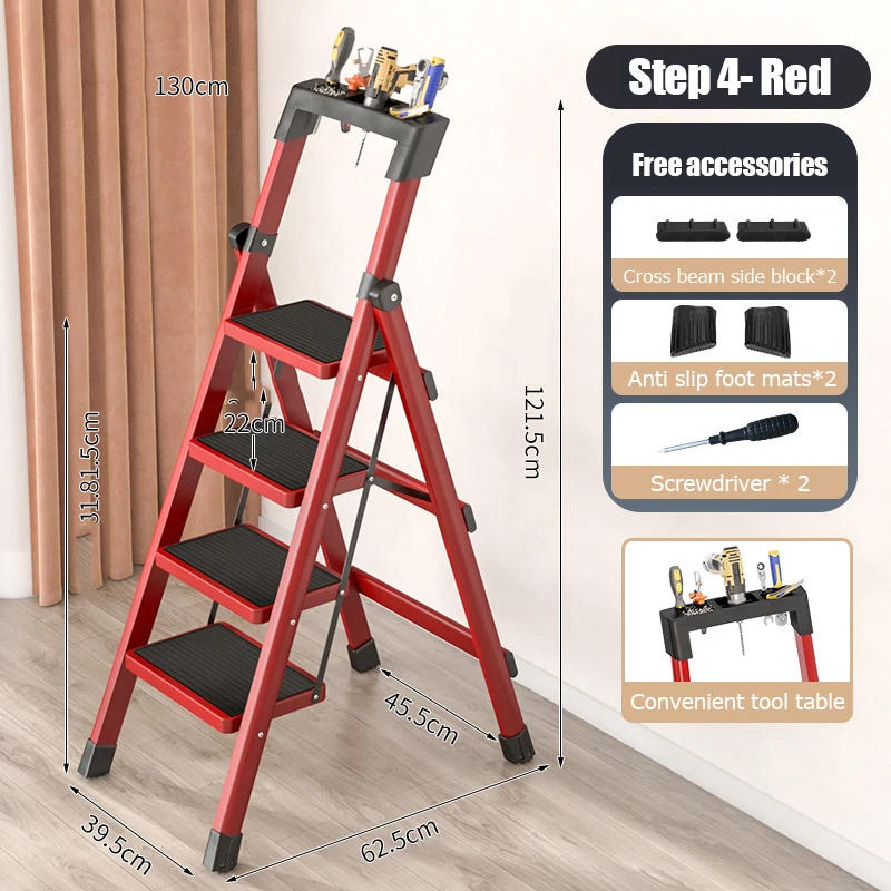 Carbon Steel Folding Ladder Multifunction Ladder 3/4 Step Ladders Width Pedal Stairs Portable Step Stool Herringbone Ladders Specification Item name: Multifunctional Folding Ladder Type:Step Stool Material:Carbon alloy metal Color: Red/Black Application scenario: automobile/factory/home/supermarket Step ladder size : 3 step ladder: 39 four step ladder: 39 Packing: 1x Ladder Widened anti slip pedal for more secure and extra reassuring use, stopping slipping on the soles of the feet -Multiple strengthened crossbeams are steady and Safety -Stronger and more steady -Folding and opening is convenient and speedy Folding thickness is small, bearing in mind clean placement in any slender area Can be positioned below the bed, in the back of the door, and between the gaps