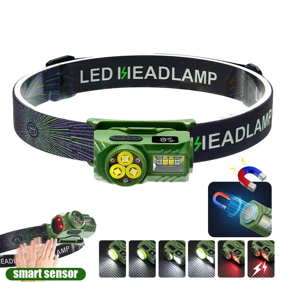 Multifunctional Induction LED Headlamp USB Rechargeable Head Flashlight with Clip Tail Magnet Work Light Camping Fishing Lantern