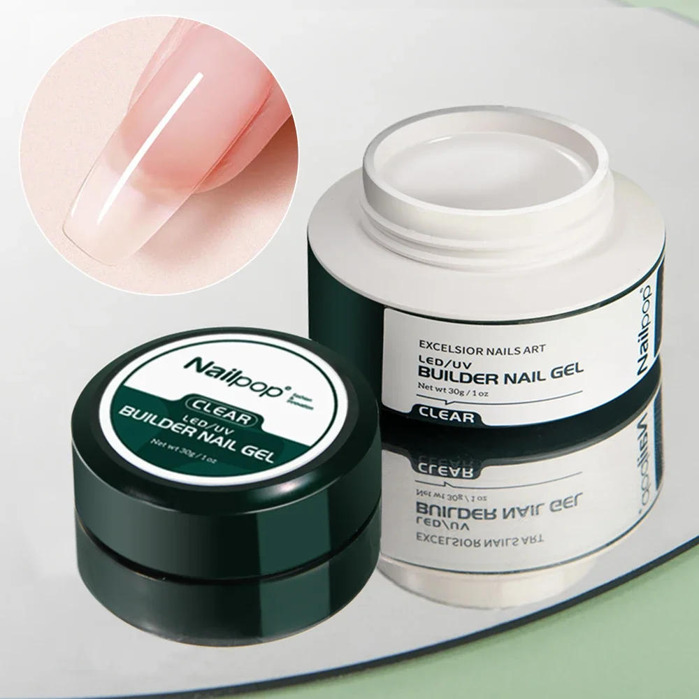 Nailpop 3 Colors Builder Nail Gel Kit Clear Nudes Pink Gel 30g for Nails Extension Set with Base Top Coat Nail Art Manicure Set