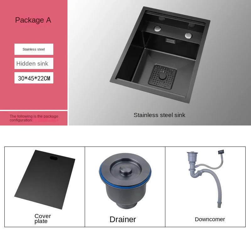 Nanometer Black Sliver Hidden Kitchen Sink Invisible Sink for Bar 304 Stainless Steel Handmade Brushed Single Kitchen Sink
