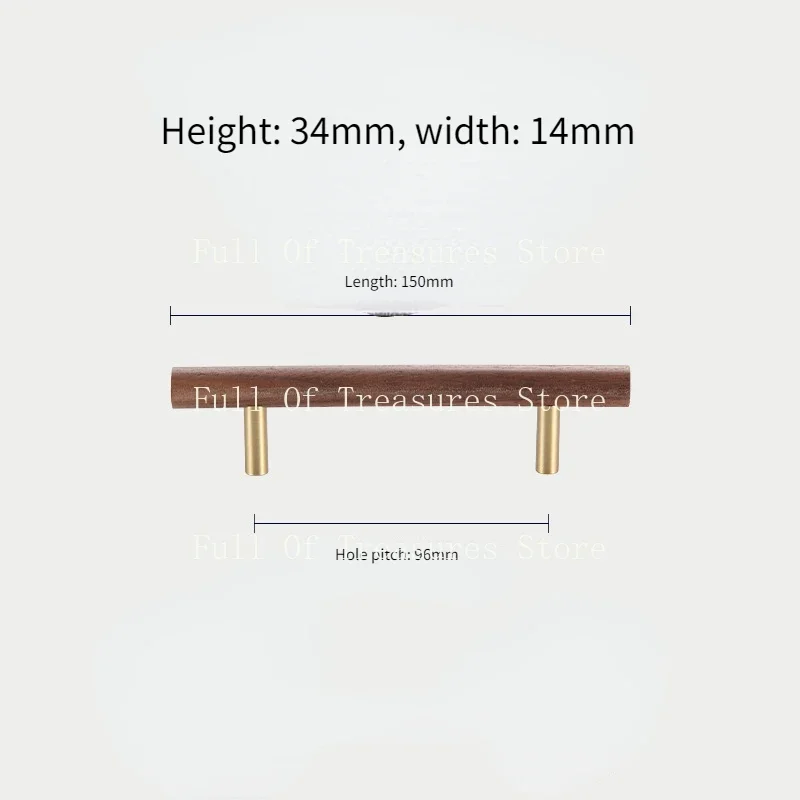 Natural Walnut + Brass Furniture Handle Kitchen Cabinet Door Handles Drawer Pulls Wooden Long Handles for Furniture Hardware