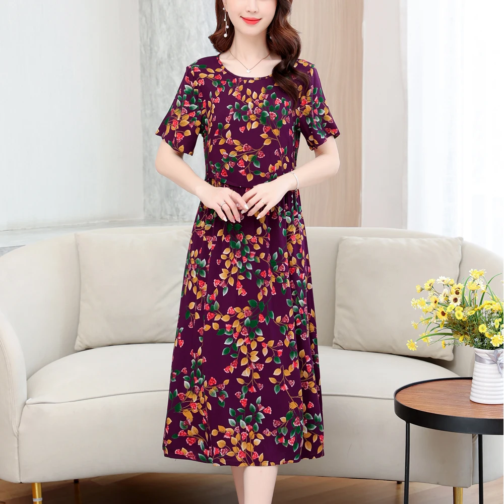 New 2023 Casual Print Fowers Summer Dresses For Women Cotton Vintage Dress O-neck Vestidos Plus Size Short Sleeve Women Clothing