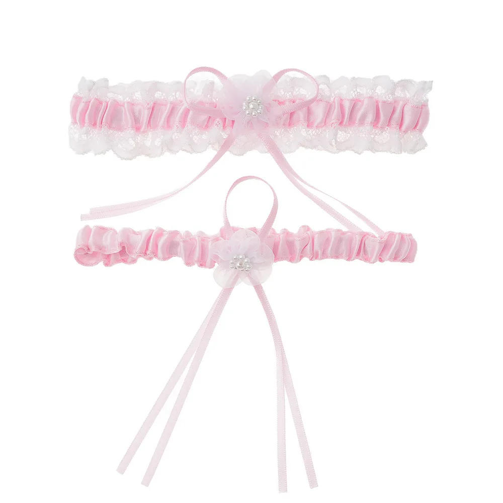 New 2PCS/Set Wedding Garter Bridal Shower Bride Keepsake Ivory Lace Floral Rhinestone Bow Women Ladies Garter Hen Night Supply