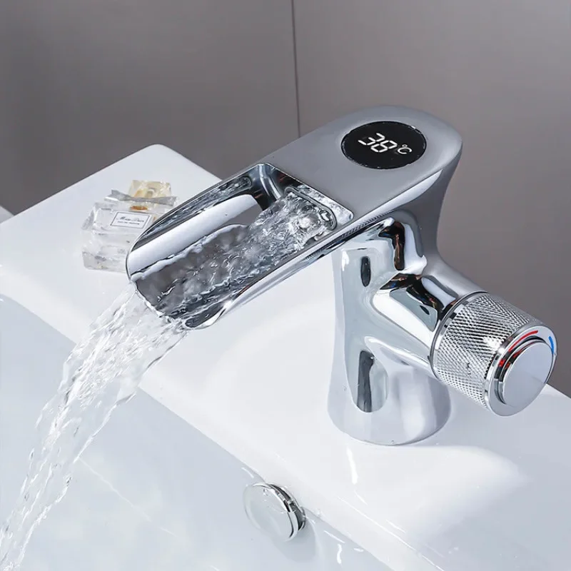 New Basin Faucet Temperture Digital Show Bathroom Black Wash basin Single Handle Hot and Cold Waterfall