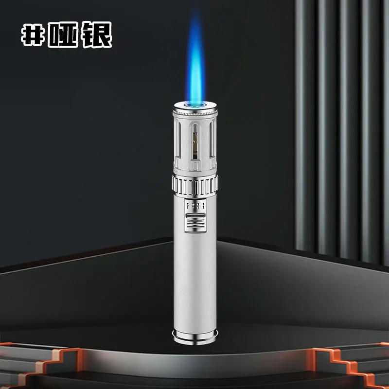 New Cylindrical Butane Gas Lighter, Outdoor Camping and Barbecue Portable Ignitor, Cigar Lighter, Metal, Windproof