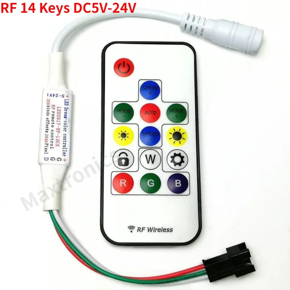 NEW DC5-24V WS2812B WS2811 LED Controller RF 14key / 21Key Remote Wireless 350+ Dream Effect 3pin SM JST RGB IC Led Strip Lights