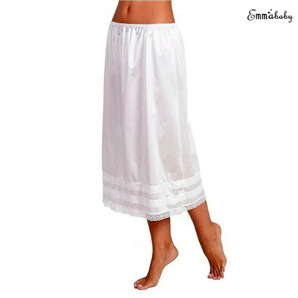 New Fashion Womens Lace Underskirt Smooth Skirt Petticoat Under Dress Long Skirt Safety Skirt Oversize