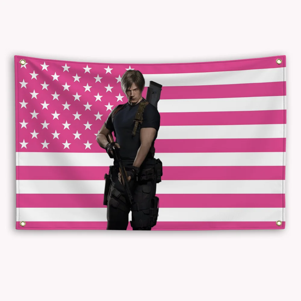 New Leon Kennedys Pink American Flag Banner Custom Flags for Bedrooms Tapestry Outdoor Decorations Garage Decoration Advertising