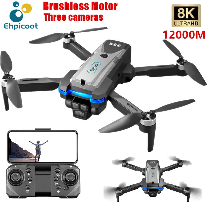 New S8S RC Drone Brushless 8K Three ESC Camera Optical Flow 360° Obstacle Avoidance Headless Mode Foldable Quadcopter