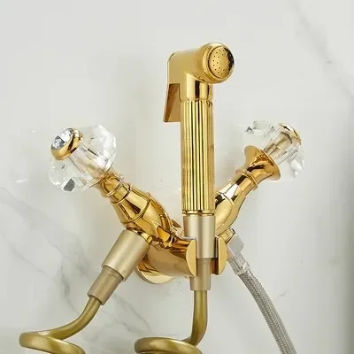 New Wall Mounted Toilet Bidet Sprayer Set Brass Double Use Bathroom High Pressure Gun Gold Marble Handle