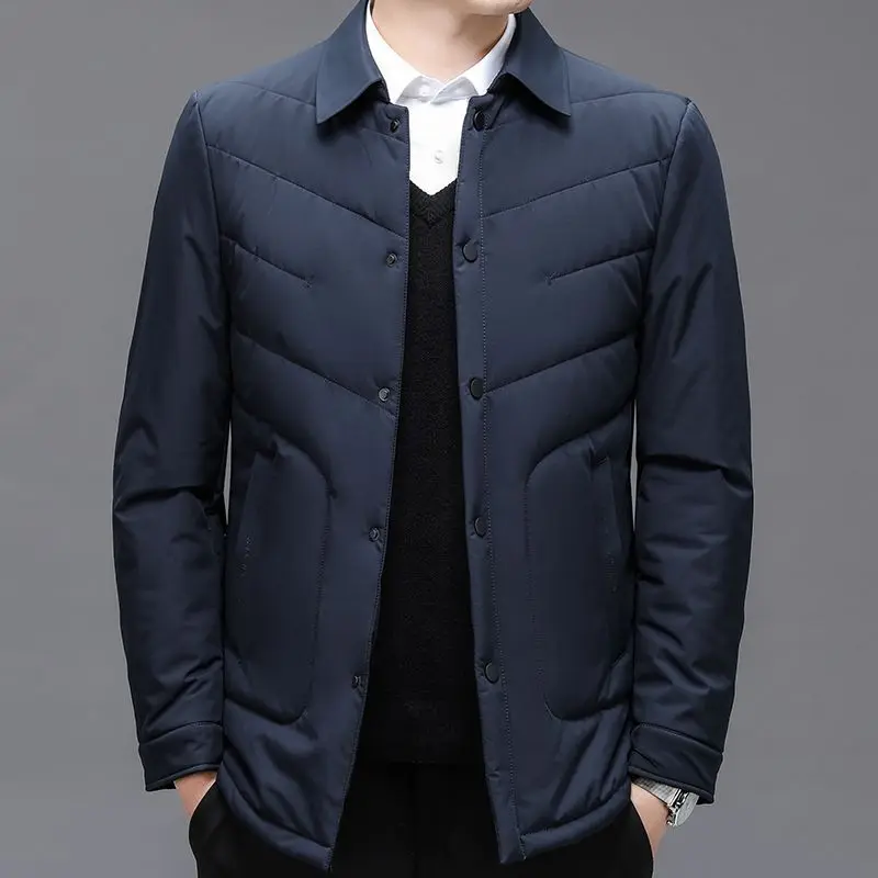 New Winter Jackets for Men Business Casual Lapel Parkas Lightweight Solid Single Breasted Padded Jacket Fashionable Male Coats