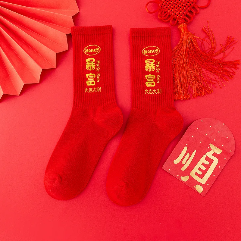 New Year socks, zodiac year trend, good luck, big red socks, unisex socks