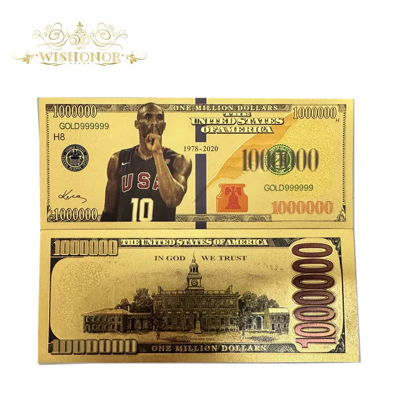 Nice 10pcs/lot America Kobe silver Banknotes 100 Dollar Banknotes in 24k Gold Plated Fake Money Gold Plated Business Gift