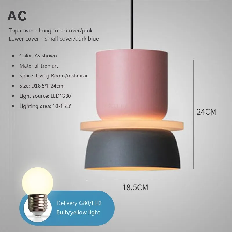 Product Information Product Type:Pendant Light Is Bulbs Included: Yes Is Smart Device:No Product color:Macaron Size:D18/22/29cm;H22/24/28cm Voltage:90-260V Wattage:5W Material:Iron artwork Lighting Area:10-15㎡ Light Color:Cool white/Warm white/Tricolor Light Warranty:2 12 months Certification: CCC,CE,PSE,ROHS Space:Restaurant/Living room/Coffee Shop Product Features Modern macaron le&;d iron chandelier White light heat gentle three colours light, ten styles in your choice High-quality high translucent acrylic lampshade, sandblasted paint, delicate texture Adopting iron ceiling plate, stable bearing force, durable LED light source, uniform gentle transmission, smooth mild effect, energy saving and eye defense