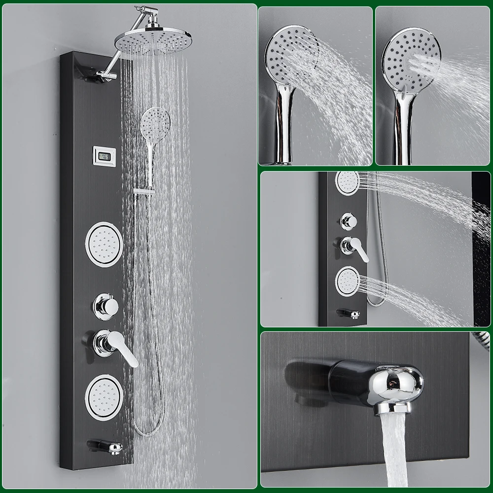 Onyzpily Black Shower Panel Shower Column Faucet Digital Temperature Screen Bath Shower System Rotable Spa Massage Sprayere SprayerNOTE:Before installation, please make sure you clean the journal that's left in the wall water pipe, that is, dirt, in an effort to now not block the water. Payment We settle for Escrow and fundamental credit cards. Shipment conditions1. Usually shipment can be organized within 1 working day after receiving payment. Each merchandise can be shipped out if payment obtained earlier than 17:00 each day. We veritably deliver via Fedex ,DHL,EMS or some direct traces for some countries. Usually the delivery time is 5-7 operating days. We deliver in conserving with the tackle on Buydo please ensure your deal with on Buydo is the right one. Mail transit time is best estimated, yet not guaranteed. As transit time varies. Buyer is responsible for return shipment. Free Shipping to US,Southeast Asia,other countries pls verify the according Shipping charge details7. We can deliver to international ,countries now not in our guidelines ,pls touch us for transport charge Return Policy:· Returns for change are accredited and may be initiated by way of the client within the following periods: Defective/ Wrong Items - in the guarantee period. Non-Defective Merchandise (10% restocking fee can be charged) - within 14 days of receipt. · If you want to return your product(s) for repair / alternative / refund, please kindly contact our customer service· Warranty period: Default 2 year warranty (starting from the dispatch date) for all products, until specified on the specific merchandise pages.· Buyers are answerable for the returning transport prices below any conditions · I describe items as well as I can. If I have ignored something, please let me know.· Please e-mail me earlier than leaving suggestions if you are unhappy along with your item, so we can paintings it out.· International Buyers - Please Note: Import duties, taxes, and charges shouldn't included within the item price or transport cost.