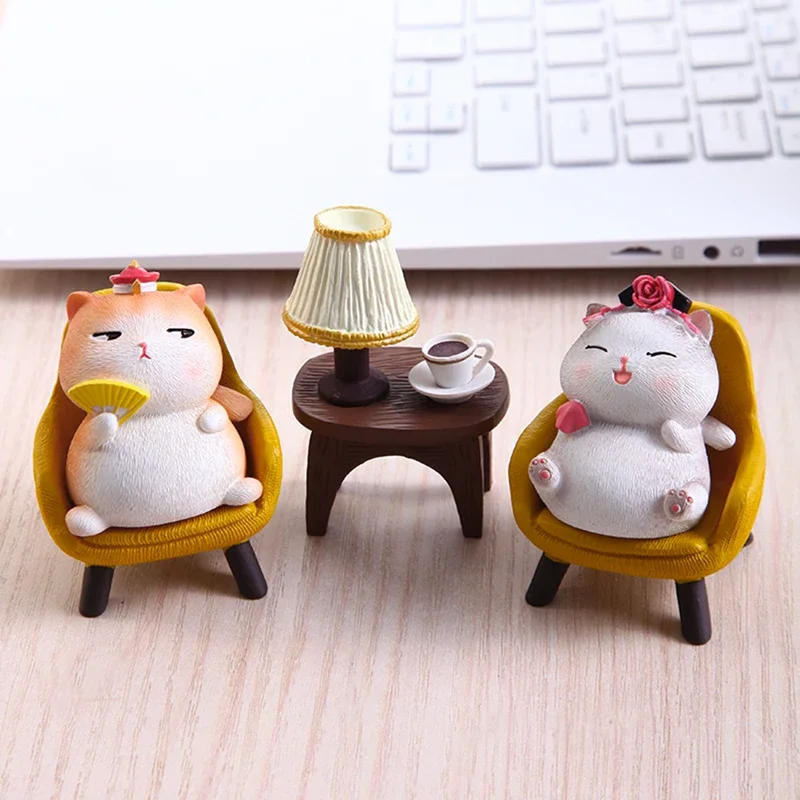 Originality Rocking Cat Fan Figurines Modern Cute Bedroom Room Figurines & Miniatures Nordic Cabinet Home Decor Estatua FYFM