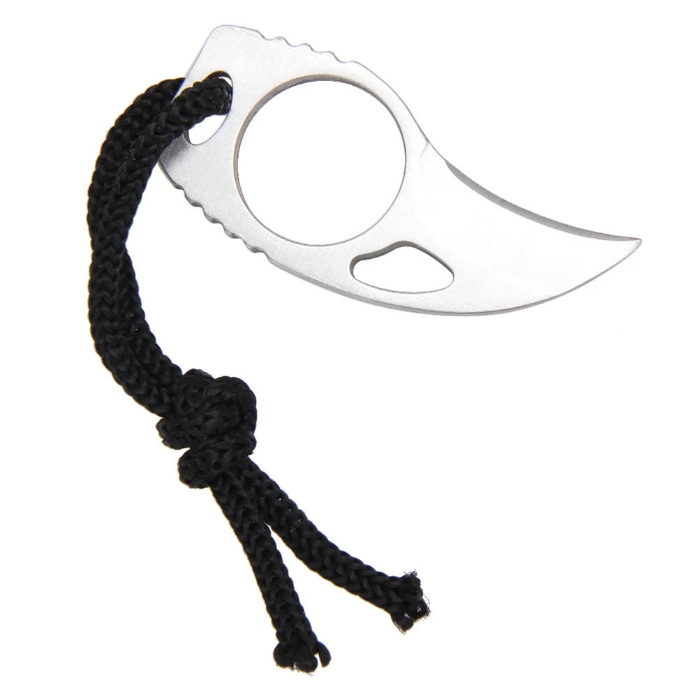 Outdoor Camping Carabiner Survival Finger Claw Knife Hook Fixed Ring Card EDC Tool Mini Pocket Knife with Leather Sheath