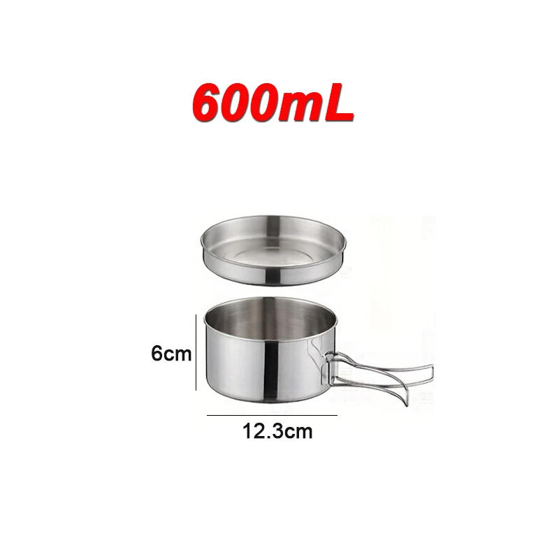 Outdoor Camping Cookware Set 401 Stainless Steel Camping Pot 600mL and 900mL Bowl Pot Set Hiking Backpacking Cooking Picnic