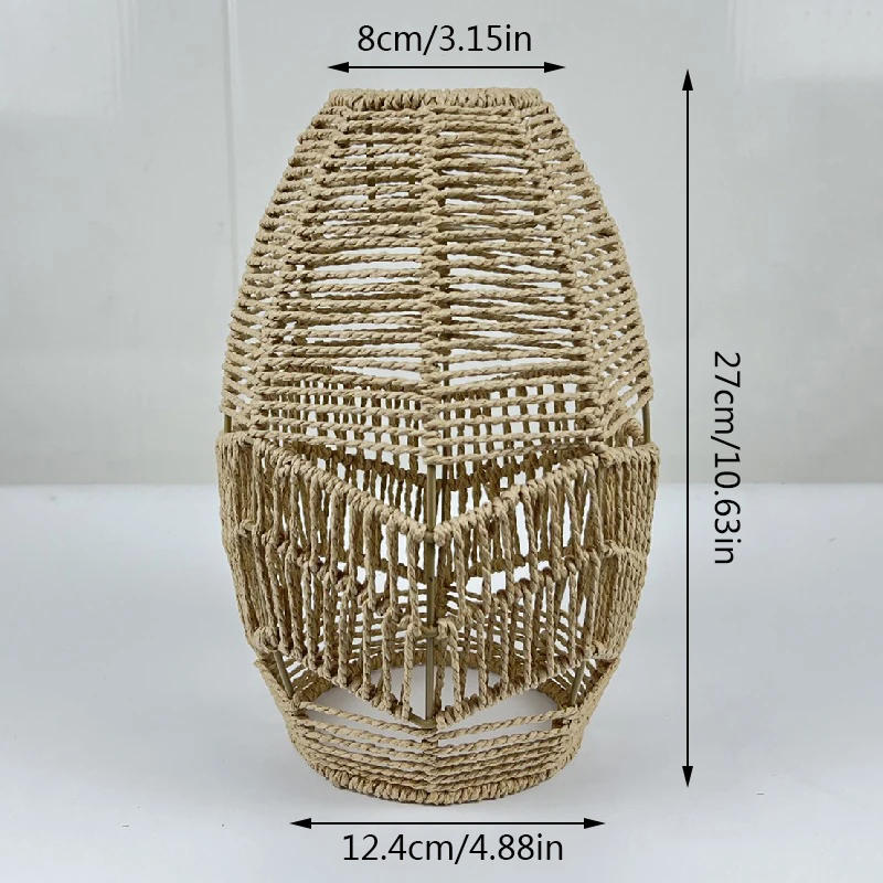 Pendant Lamp Shade Paper Rope Simulated Rattan Boho Handwoven Wicker Lampshade Light Fixture Chandelier Cover Restaurant Decor