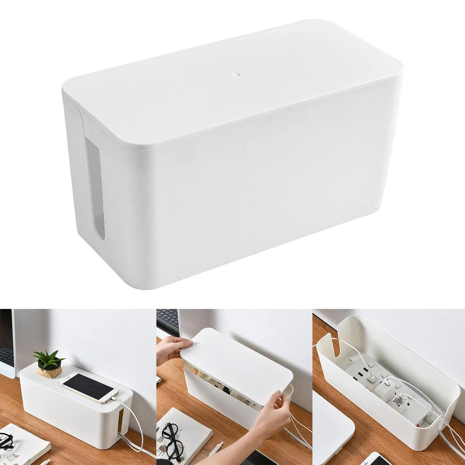 Plastic Cable Storage Box Desktop Power Strip Storage Box Wire Management Socket Tidy Organizer with Lid for Home Room