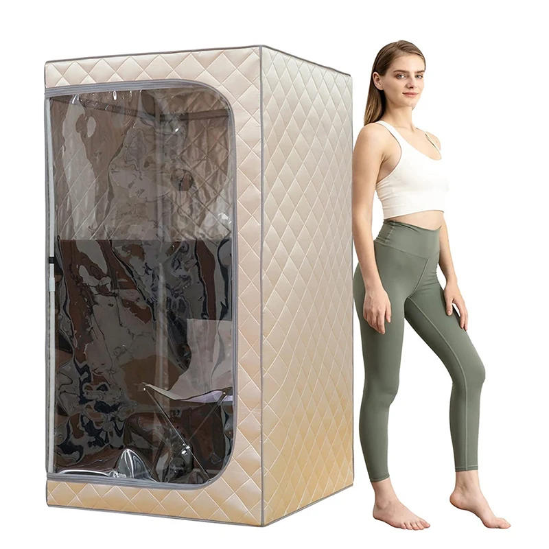 Portable Full Size Infrared Sauna, Home Spa Detox Therapy with Upgrade Reinforced Portable Chair-Beige, L33.9" x W33.9" x H66.5"