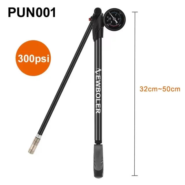 PUN001 300psi Bike Smart Valve Pump with Gauge for Fork & Rear Suspension Shock Absorber Mountain Bicycle Pump Pressure: three hundred Psi / 20 bar max Weight: 152g Valve: Smart Head (AV/FV) Barrel: Aluminum alloy Application: Bike Fork / Rear Suspension