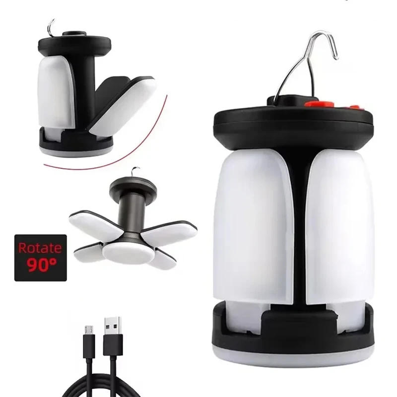 Portable LED Camping Lantern Rechargeable Multifunctional Folding Hanging Tent Light Outdoor Emergency Mobile Power Supply