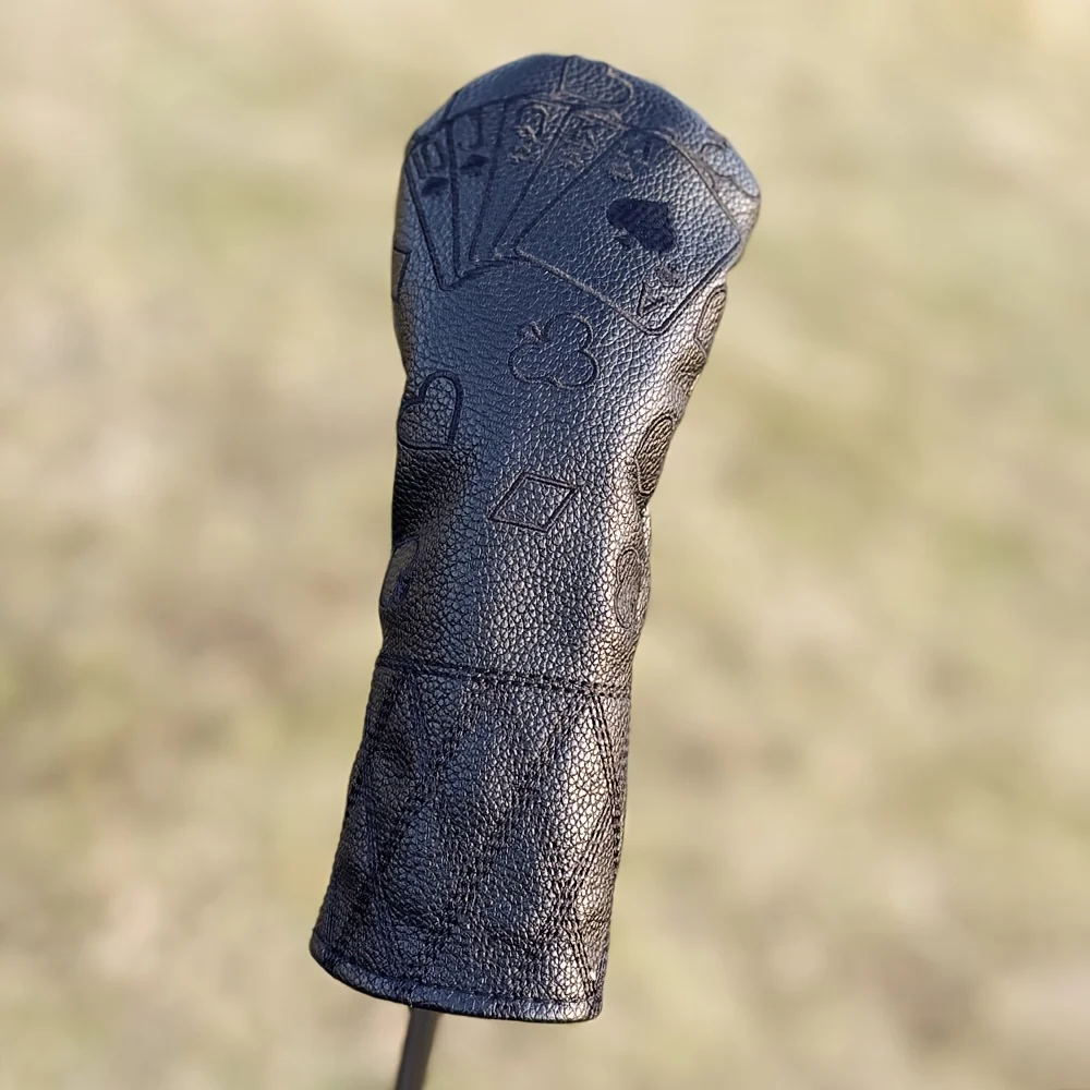 Premium Black Poker Style Golf Club Head Covers - Durable Synthetic, Protective Case for Drivers, Woods, and Hybrids