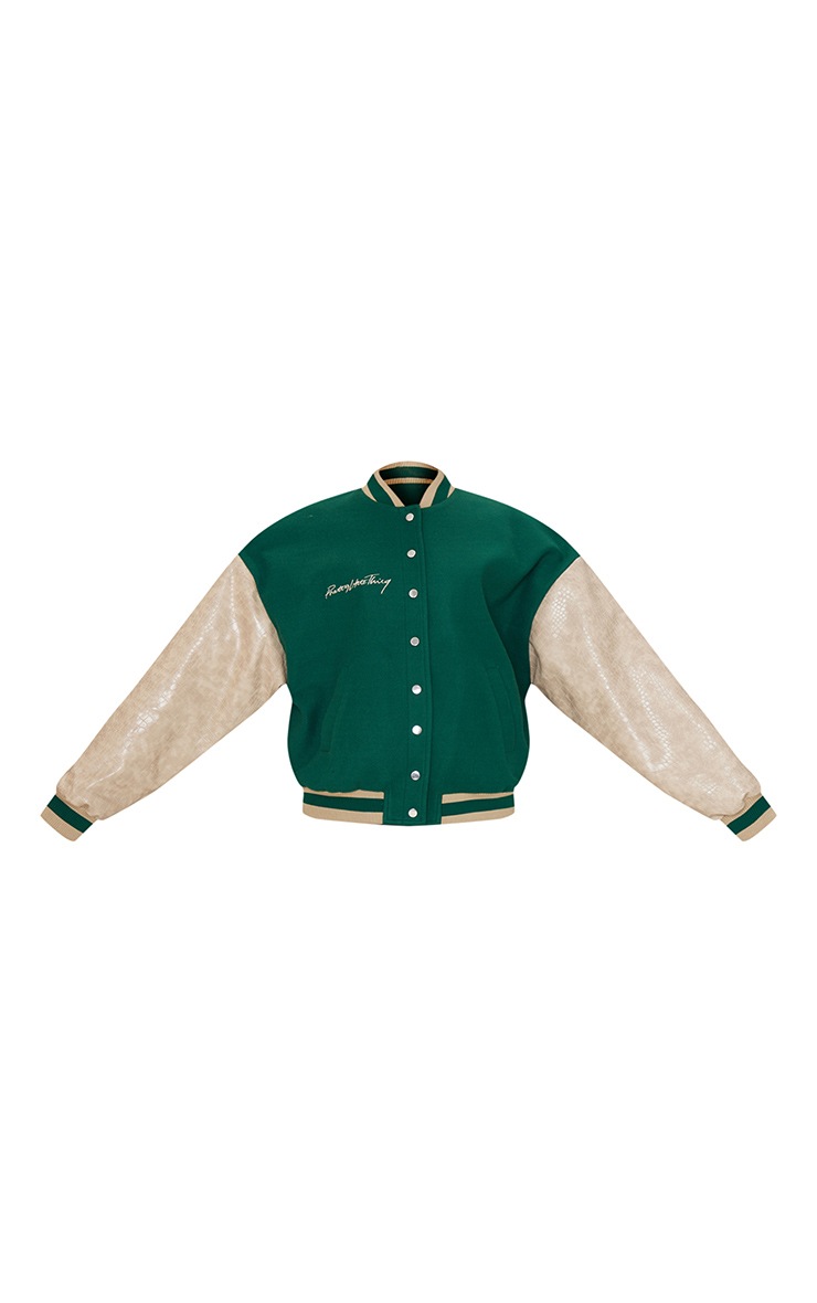 PRETTYLITTLETHING Forest Green PU Sleeve Bomber Jacket