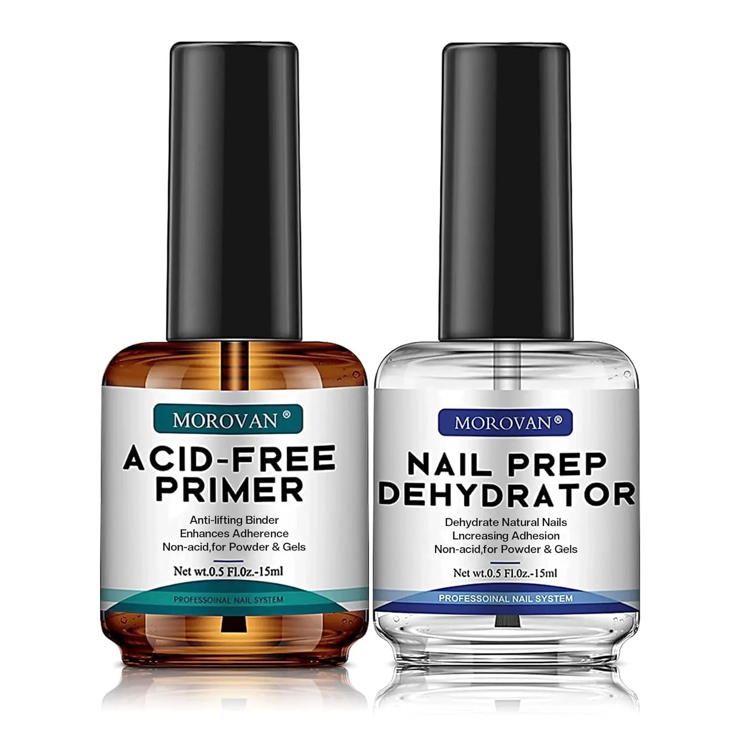 Professional Natural Nail Prep Dehydrator and Nail Acid-Free Primer Set, Fast Air Dry For Gel Polish & Acrylic Powder 0.5oz